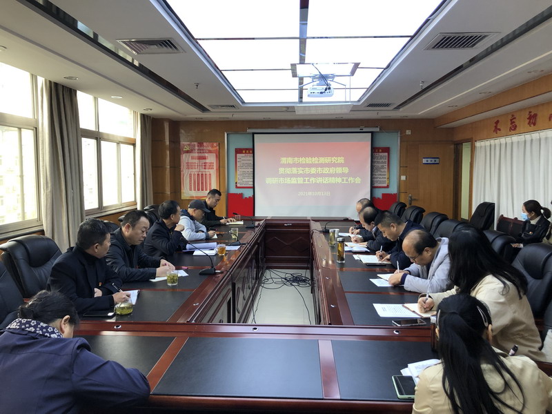 10月13日,党委书记、院长梁金星主持召开了贯彻落实市委市政府领导调研市场监管工作讲话精神工作会。梁院长组织各科室,各检测中心班子成员、办公室主任学习了市委市政府领导讲话精神,按照市局要求提出下一步工作部署。
