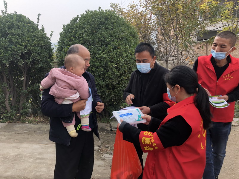 会后,社区工作人员带领15名志愿者分为四组进入村民家中,发放“渭南市创建全国文明城市”宣传资料,讲解注意事项,每户赠送一包一次性医用口罩。