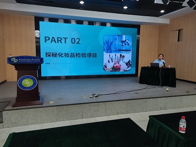 活动伊始药品不良反应监测中心以"化妆品安全与不良反应监测"为题向陕铁院广大师生作了专题讲座,分别从化妆品基础认知、化妆品产品标识规范、化妆品不良反应处置、化妆品安全使用等方面以典型生动的案例进行了深入解析,食品药品检验中心以“化妆品检验全解析”为主题,从化妆品检验的意义、检验项目、检验方法、检验标准、检验流程等方面进行了全面的介绍,为广大师生送上了一堂贴近生活、实用易懂的安全用妆科普课,切实做到了既保障美丽又注重安全。