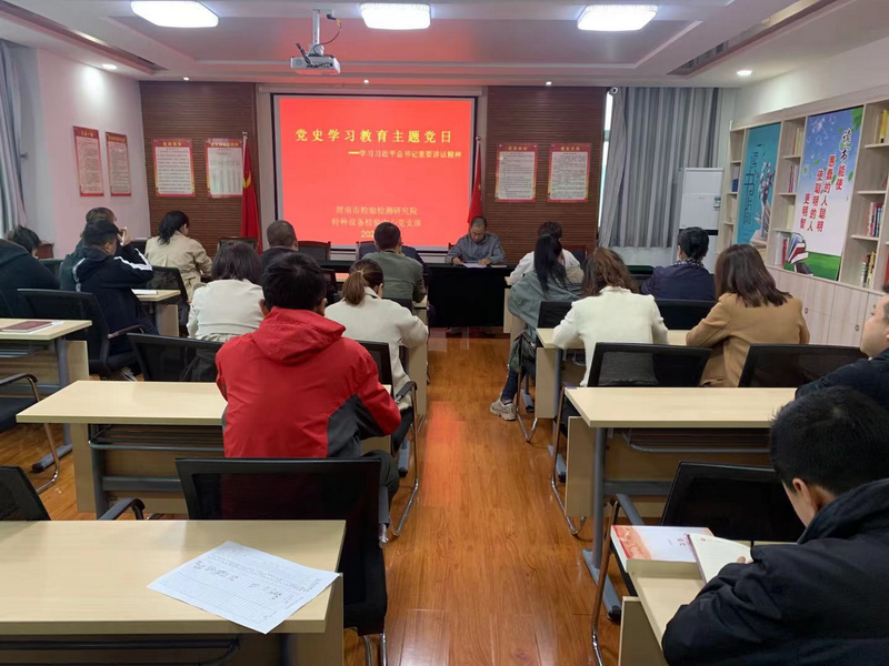 主题党日活动第一项,由支部宣传委员陈建同志带领支部全体党员学习习近平总书记来陕考察重要讲话、习近平总书记在中央人才工作会议上的重要讲话精神以及渭南市人民政府市长陈晓勇在市市场监管局调研座谈会上的讲话提纲。陈建同志表示,特检中心党支部将继续深入抓好党史学习教育工作,不断增强“四个意识”、坚定“四个自信”、做到“两个维护”、提高党员干部政治判断力、政治领悟力、政治执行力,胸怀“两个大局”、牢记“国之大者”。