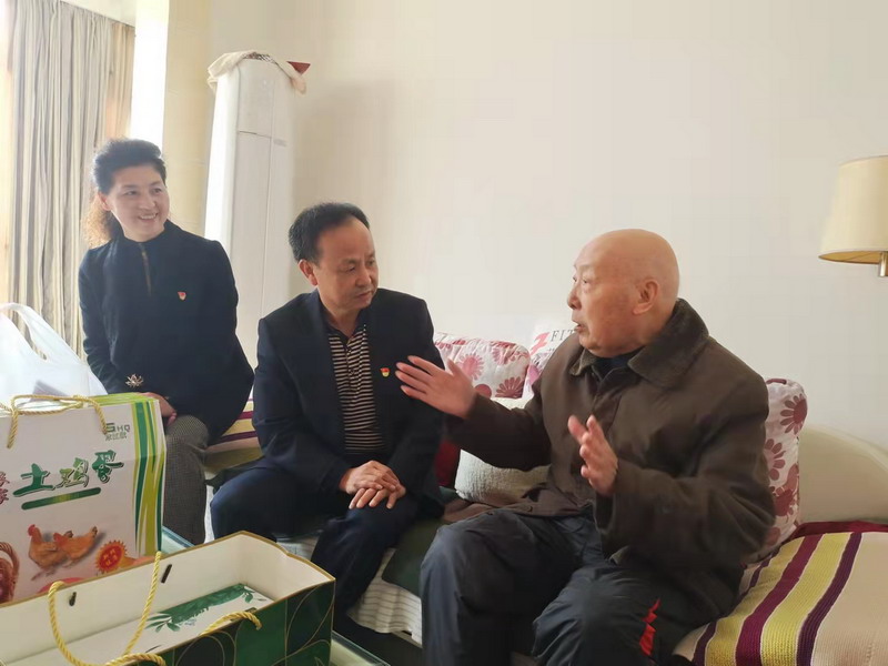 市检验检测研究院院长梁金星一行在杜桥办纪委书记王鹏和财政社区党委书记王洁陪同下,先后看望了财政社区2名参加过抗美援朝作战和1名“空巢”高龄老人,为老人送上健康长寿、重阳快乐的美好祝福。