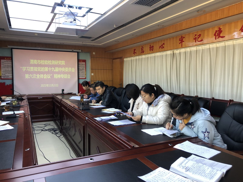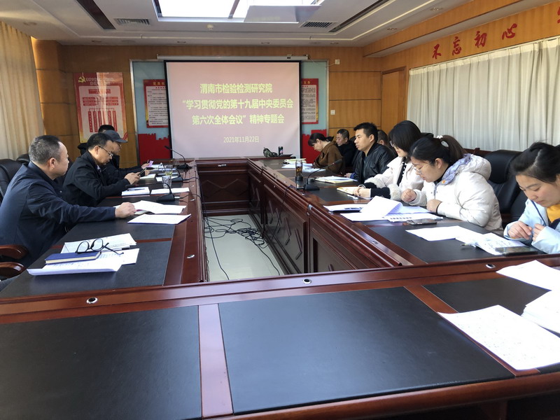 为学习贯彻落实党的十九届六中全会精神,持续推进党史学习教育,11月22日上午,渭南市检验检测研究院机关党支部组织开展学习贯彻党的十九届六中全会精神专题研讨会。