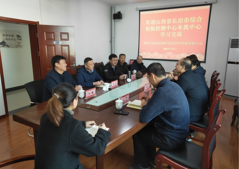 11月26上午,山西省长治市综合检验检测中心副主任刘冰、技术负责人郭鸿斌、质控科科长牛巍等一行来到渭南市检验检测研究院特检中心进行业务交流。