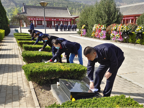 清明将至,为缅怀革命先烈事迹、回顾党史光辉历程、珍惜当下美好生活,计量测试中心党支部积极开展“2022 · 奋进 · 网上祭英烈”活动的同时,在做好疫情防控的前提下,于4月2日上午前往临渭区王尚德烈士陵园开展 “清明时节 缅怀先烈”主题党日活动。