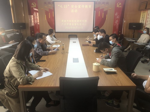 4月11日上午,中共渭南市检验检测研究院产品质量监督检验中心党支部充分利用电子屏、传媒体等学习资源组织开展“4·15”安全教育宣传活动。中心全体工作人员参加本次活动。