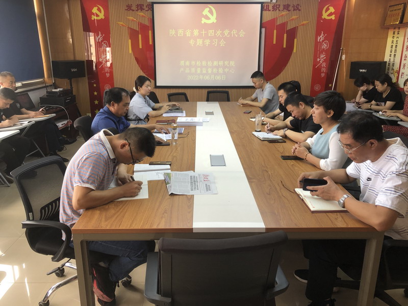 6月6日上午,渭南市检验检测研究院产品质量监督检验中心按照市局党组和院党委的安排部署专题学习陕西省第十四次党代会,中心全体工作人员参会学习。