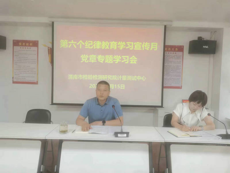 为进一步提高党员干部的思想觉悟和纪律意识,进一步加强党风廉政建设。6月15日,渭南市检验检测研究院计量测试中心组织召开第六个纪律教育学习宣传月党章专题学习会,中心党支部书记、主任刘志平主持会议并做动员讲话。