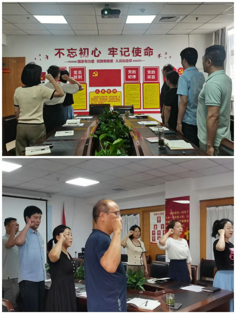 “我志愿加入中国共产党,拥护党的纲领,遵守党的章程,履行党员义务......”会议开始,全体党员重温入党誓词,铿锵有力的声音传达出身为共产党员的责任感和荣誉感,坚定初心使命,砥砺奋进前行。