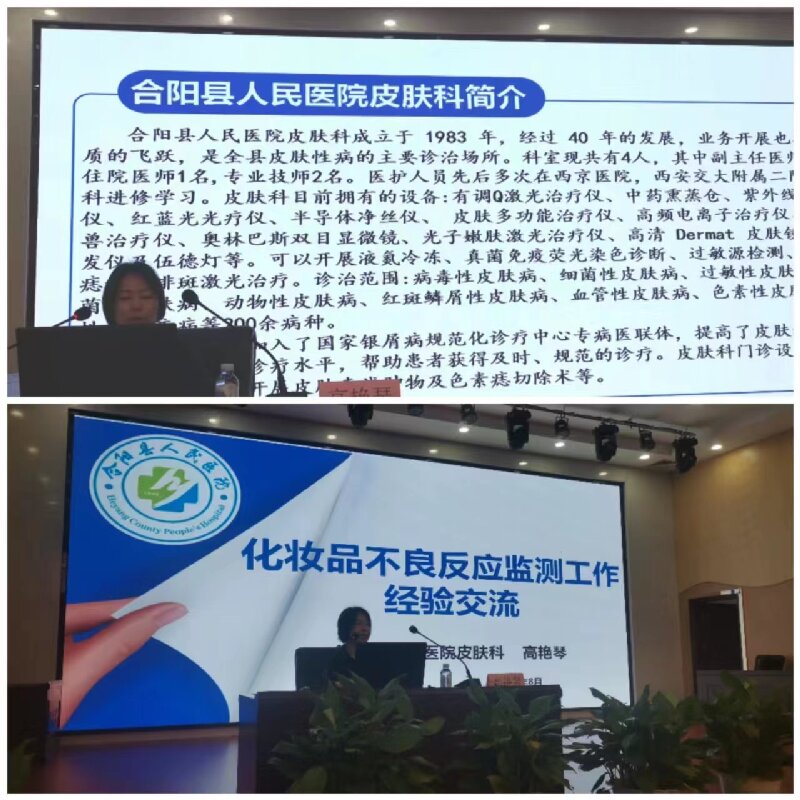 会议邀请合阳县医院皮肤科高艳琴主任就如何开展化妆品不良反应监测工作作经验交流,并结合典型案例详述了化妆品皮肤病的诊断标准及处理原则。