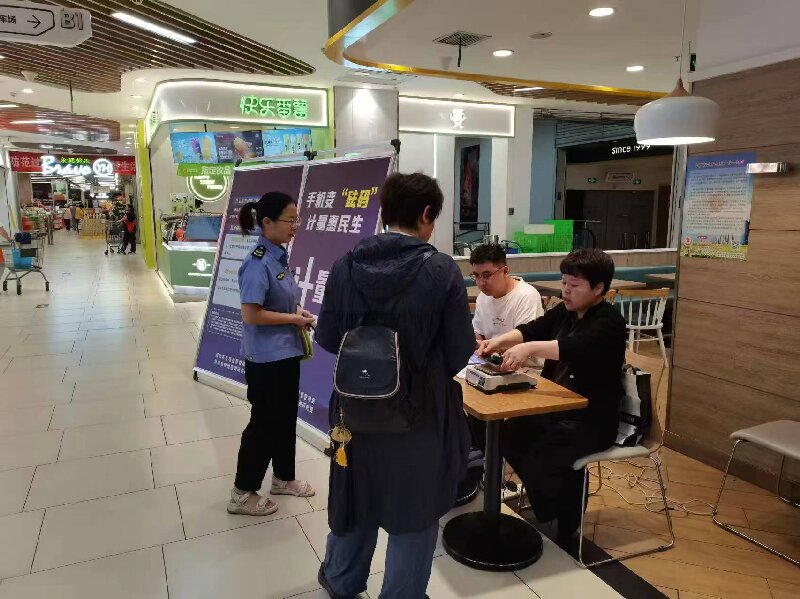 同时,在全市范围内集中开展了为期两个月的“手机变砝码”计量技防服务宣传活动。现场对群众的手机进行称重,并在手机背面加贴统一标签,让手机秒变可随身携带的“砝码”,以便大家在购物时能够初步判断电子秤的准确性。同时耐心解答群众关于电子秤防作弊等相关问题,引导消费者在购物时使用该手机“砝码”对商家秤具进行“验证”。