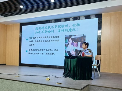 活动伊始药品不良反应监测中心以"化妆品安全与不良反应监测"为题向陕铁院广大师生作了专题讲座,分别从化妆品基础认知、化妆品产品标识规范、化妆品不良反应处置、化妆品安全使用等方面以典型生动的案例进行了深入解析,食品药品检验中心以“化妆品检验全解析”为主题,从化妆品检验的意义、检验项目、检验方法、检验标准、检验流程等方面进行了全面的介绍,为广大师生送上了一堂贴近生活、实用易懂的安全用妆科普课,切实做到了既保障美丽又注重安全。